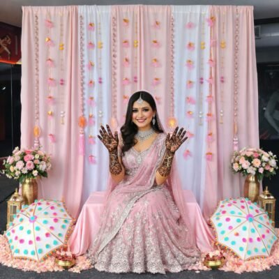 Be the first to review “Beautiful pastel pink backdrop decoration set (backdrop curtains+ Props set)”