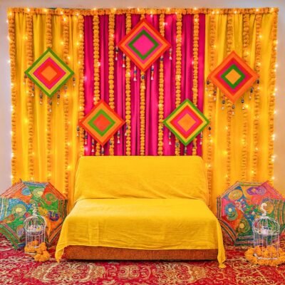 Haldi/Mehndi Backdrop decoration Kit (Backdrop curtains + Props) |Indian wedding